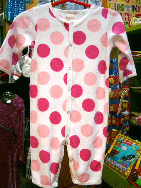 オシュコシュ/OshKosh ピンクの水玉ベロアロンパース |