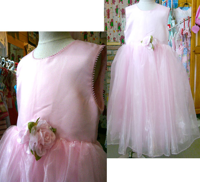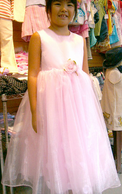 ※グリーンハウスにご来店の8歳のお嬢さんが着るとこんな感じです。ベビーピンク のお色がとってもお似合いです!結婚式にぴったりです。