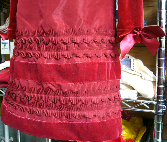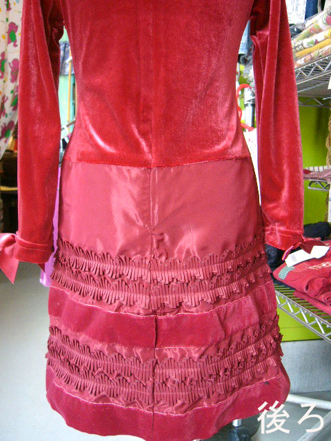 フォーマルワンピース チルドレンズプレース5Tベロア調の光沢とスカート部分にふんだんに使われたリボンが大変豪華なワンピースです。袖口の大きなリボンもおしゃれです。後ろチャック。発表会、七五三、入園式などにぜひお薦めしたいワンピースです。 サイズ: 5T(約120cm)