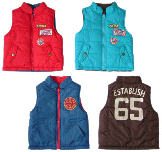 長袖Tシャツの上にはおれば、元気に遊べる、これからの寒い季節に暖かいベストをどうぞ。軽くて暖かく、なんといっても動きやすいのが一番。元気な男の子にぜひ着せたいですね。色は2色です。レッド&ネイビー、ターコイズブルー&ブラウン