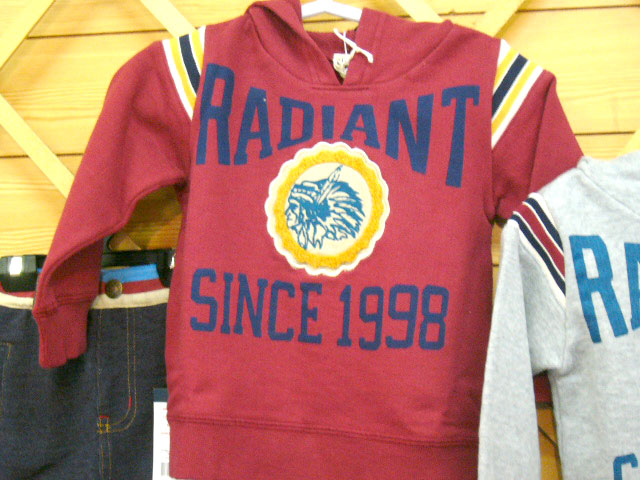 かぶりのフード付きスエットパーカーです。ネイティブアメリカンのロゴプリントがおしゃれ。Tシャツの上にはおったりするのにとても便利。パーカーつきなのでちょっと寒いときには帽子代わりにもなるので便利です。プレイタイムにもスポーツにも動きやすいのでおすすめです。FOKIDSらしく、もちろんバックプリントも入っていて1枚は欲しいスエットパーカーです。色も3色、エンジ、グレー、ネイビー。サイズは、80−100まで。