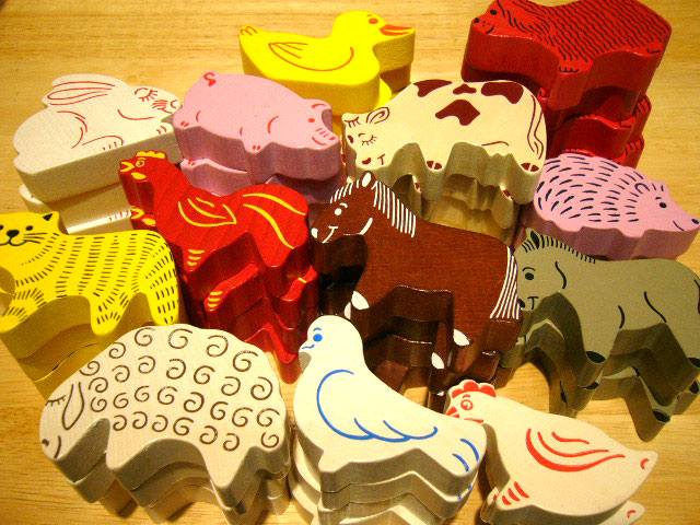 ちょうど小さいお子様にも握りやすいサイズです。それぞれ大きさが異なりますが、1個が約6センチぐらいです。シンプルなデザインの木製動物なので、動物の名前や色を遊びながら楽しく覚えられます。もちろん動物ごっこのお遊びや、木のブロックとして積み木遊びもできます。