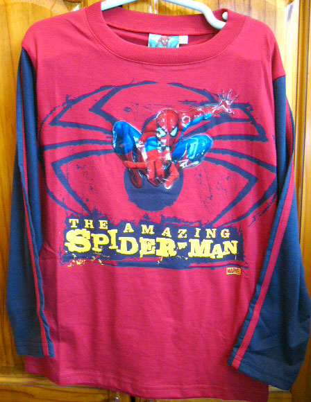 スパイダーマン 長袖Tシャツ ワインレッド&ネイビー 袖2本ライン