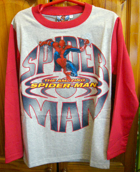 ボディの色はグレー、袖がレッド。脇からバック腰あたりにかけてプリントがあります。とにかくかっこいい。スパイダーマンファンの男の子にぜひ!