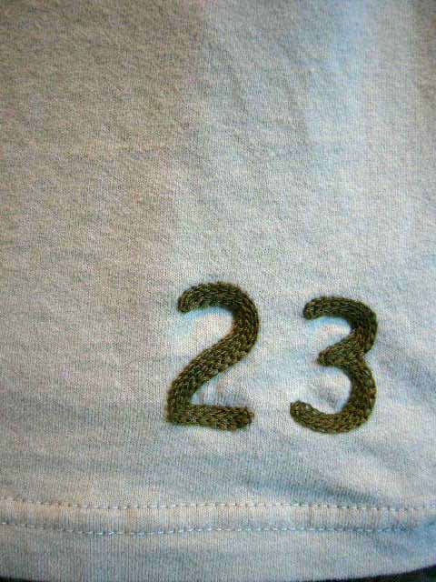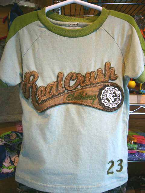 ビンテージ風のかっこいいアップリケのついた大変手の込んだTシャツです。サイズ、色を選択してください。