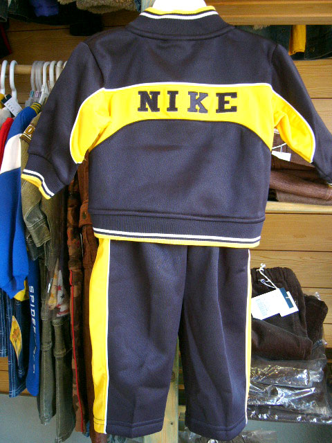 ネイビーカラーにイエローのアクセントカラーがきいています。もちろん背中にも大きくNIKEのロゴが入っています。お外遊びに、運動にとっても目立ちます。上下セットできるととってもかわいいです。もちろん別々に着ても便利に使い回しができそう