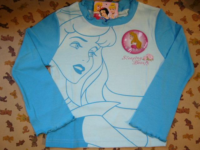袖口が少し広がったちょっと大人っぽいデザインで、えり、袖口はフリルづかいです。女の子の大好きなプリンセスのビニールワッペンが胸元についています。