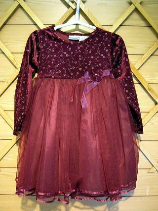 ワインレッドの大人っぽいドレスです。スカート部分は3枚重ねですからフェミニンなやさしい印象を与えます。