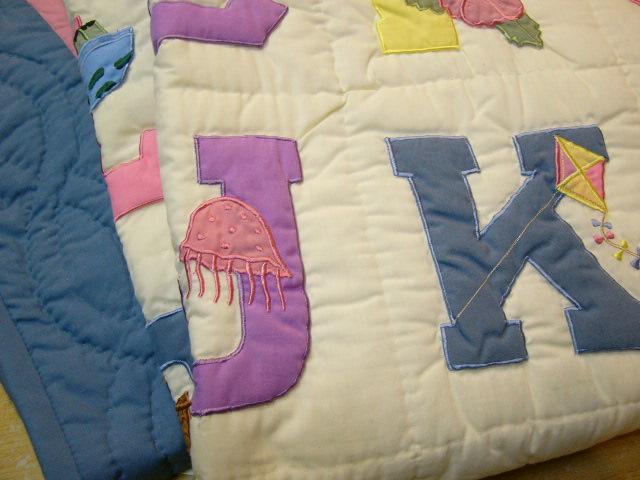ハワイアン柄のABCブランケットピンクです。タペストリーにもできるように後ろに棒を通せるループがついています。サイズ 103x123センチ商品型番760と同じデザインです。女の子には、ピンクもございます。