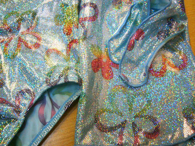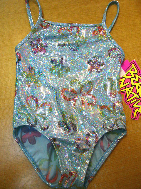 水色ラメのお花の水着