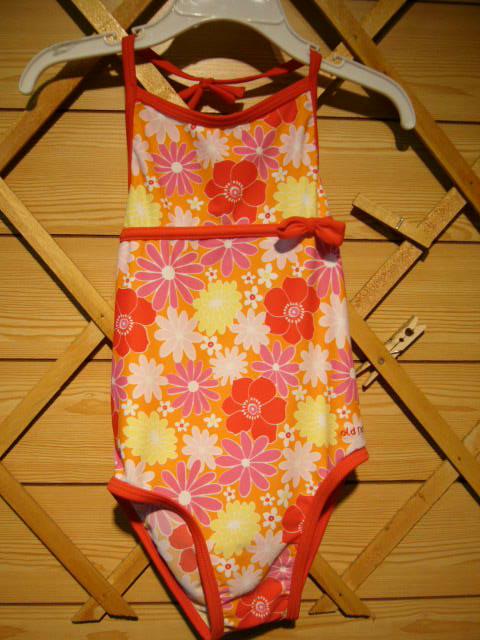 左下にオールドネイビーのロゴが刺繍されています。オレンジの花柄のワンピースです。
